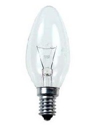 Žvakės formos kaitrinė lemputė, cokolis - E14, lemputės galingumas - 60W, įtampa - 230V.