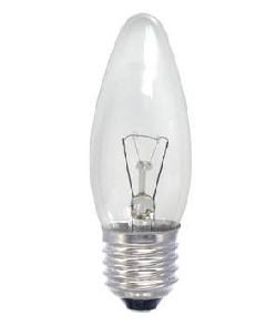 Žvakės formos skaidri kaitrinė lemputė, cokolis - E27, lemputės galingumas - 60W, įtampa - 230V.