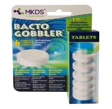 VEIKIMAS: ypač didelė (4 milijardai vienoje tabletėje) bakterijų koncentracija, esanti tabletėse, greitai suformuoja bakterijų kolonijas ir užtikrina organinės taršos skaidymą: suardo popierių, muilą, riebalus, sanitarines servetėles, plaukus ir kitas organinės kilmės atliekas. Jas paverčia į vandenį ir anglies dvideginio dujas. Pilnai išvalytą vandenį galite naudoti laistymui arba nupilti ant grunto. Reguliariai naudojant, išsivalo organinės kilmės medžiagų sankaupos plautuvių, vonių, klozetų vamzdynuose, dingsta nemalonūs kvapai, greičiau nuteka vanduo.