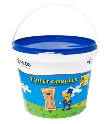 NAUDOJIMAS: lauko tualetų priežiūrai: kartą per savaitę suberkite 3 - 4 samtelius Toilet Gobbler į lauko tualetą (samtelis yra pakuotės viduje). Šis kibirėlis skirtas net 3 mėnesiams 4 asmenų šeimai! Didesnis preparato ir vandens kiekis valymo procesą greitina, todėl, norint pasiekti geresnį rezultatą, kartais į lauko tualetą įpilkite kibirą vandens.
