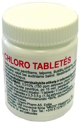NAUDOJIMAS: 0,015% (150ppm aktyvaus chloro) tirpalui: 1 tabletė/10l vandens. Plaukite paviršius, po 15min. perplaukite vandeniu; 0,15% (1500 ppm aktyvaus chloro) tirpalui - 1 tabletė/1l vandens. Baseinų vandeniui (vandentiekio vanduo) valyti ištirpinkite 1 tabletę 800l vandens.