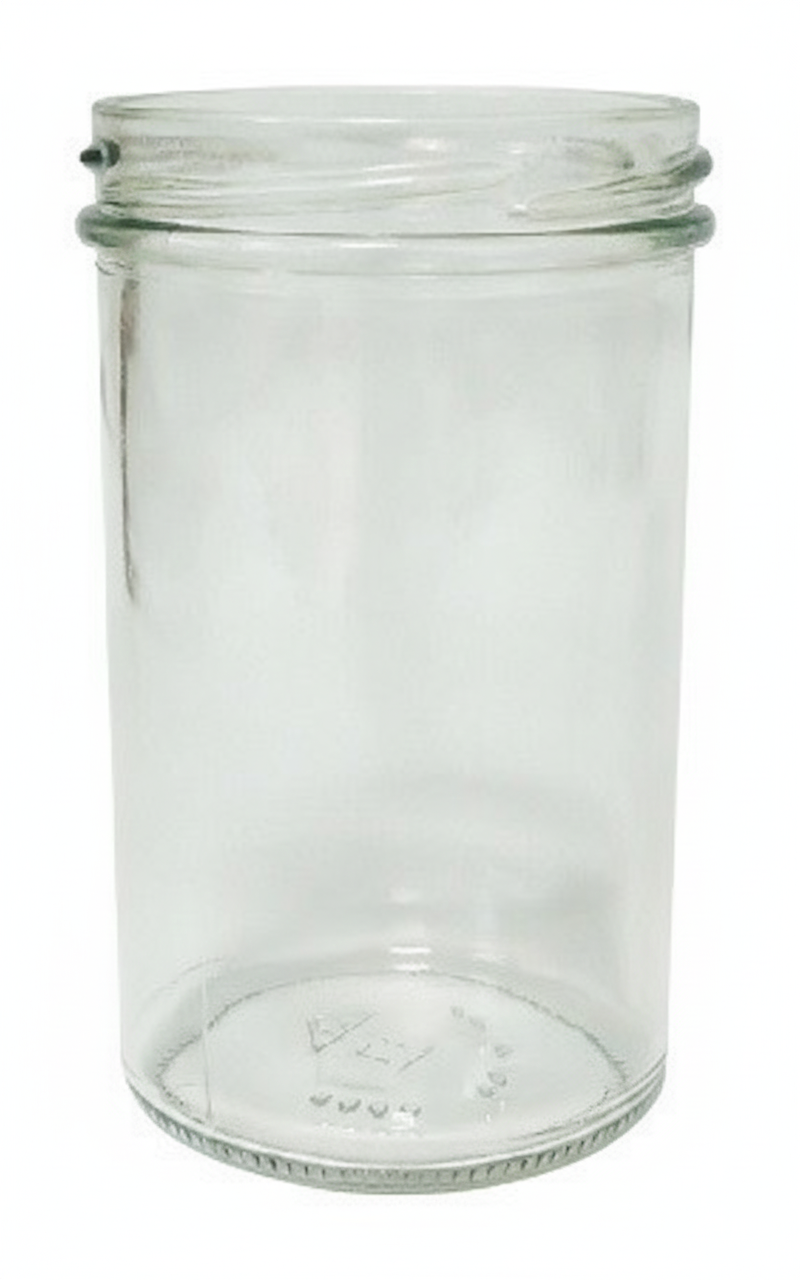 Užsukamas lygus stiklainis, 277ml talpos. Tinka 66mm dangtelis (parduodamas be dangtelio).
