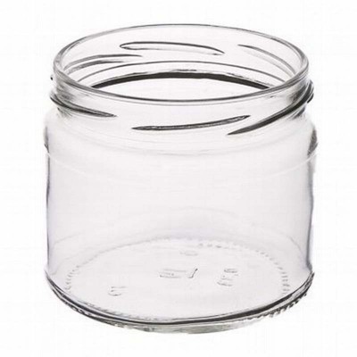 Užsukamas lygus stiklainis, 330ml talpos. Tinka 82mm diametro dangtelis (parduodamas be dangtelio).