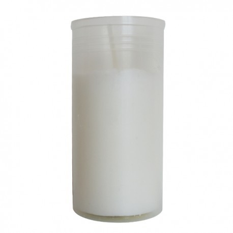 Žvakė (įdėklas) plastmasinėje pakuotėje, degimo laikas 25val., aukštis - 7.5cm, diametras - 45mm, parafino kiekis 80g.
