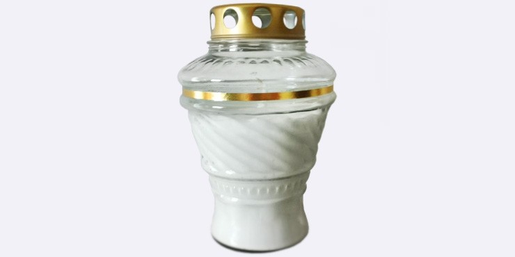 Žvakės degimo laikas 65val., aukštis - 18cm, diametras - 120mm, parafino kiekis 350g.