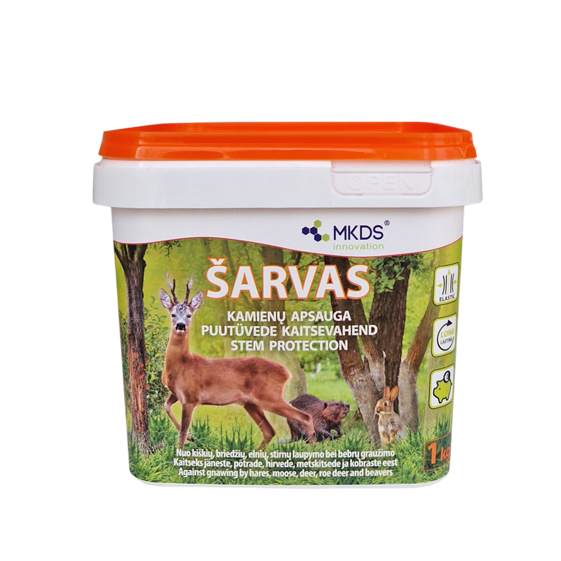 PRIVALUMAI: užtepus sukietėja po 1-3 valandų ir sudaro apsauginį sluoksnį; leidžia kamienui kvėpuoti, neįtakoja medžio augimo ar syvų tekėjimo; užtepus ant apgraužtų kamieno dalių, nesukelia pavojaus medžiams; bespalvė, nekeičia augalo estetinio vaizdo (galima naudoti kartu su balinimo kreida, išgaunamas balinimo efektas daugeliui metų); išlieka veiksminga daugelį metų.