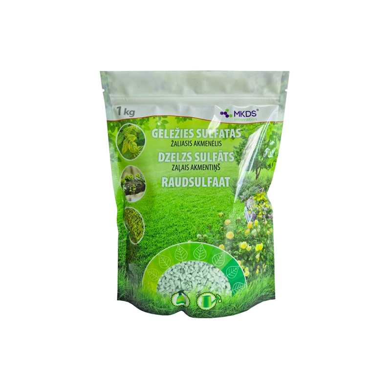 NAUDOJIMAS IR NORMOS: Vaismedžiams, uoginiams ir dekoratyviniams augalams nuo chlorozės naudojamas 0,5% tirpalas. Purškiama ar laistoma - 50g ištirpinus 10L vandens. Vejos žalumui, dekoratyvumui palaikyti naudojamas 0,5% tirpalas. Purškimo norma: 50 g/10L/100m² vejos. Geležies sulfatas didina dirvos rūgštingumą, todėl puikiai tinka tręšiant rugščiamėgius augalus, tokius kaip hortenzijos, šilauogės, rododendrai, viržiai ir pan. Vaismedžių šakos ir kamienai apaugę samanomis ir kerpėmis bus dekoratyvūs, jei anksti pavasarį arba vėlai rudenį apdorosite 5% tirpalu - 250g geležies ištirpinti 5L vandens. Purkškite pavasarį iki pumpurų brinkimo ar rudenį - nukritus lapams ir esant teigiamai oro temperatūrai. Balinant vaismedžių kamienus, mišinyje rekomenduotinas 2% geležies sulfato tirpalas - 200 g/10L vandens. Samanota veja laistoma ar purškiama tirpalu 1-5% (100-500g į 10L vandens), todėl veja vėl bus dekoratyvi. Pirmiausiai naudokite mažesnes tirpalo normas, jei reikia - padidinkite. Laistant naudokite daugiau vandens - 30L vandens/100m², apdorojant purkštuvu - l0L vandens/100m² vejos. Po 7 dienų iššukuokite veją aeratoriumi. Naudoti esant tik pripažintam būtinumui. Neviršyti atitinkamų koncentracijos verčių.