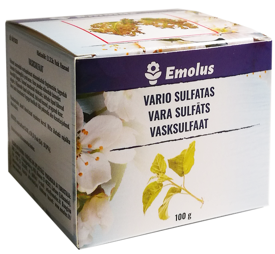 SUDĖTIS: CuSO4 × 5H2O (vario sulfatas)