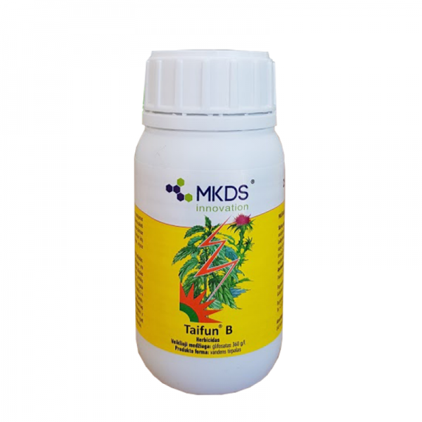 NAUDOJIMO REKOMENDACIJOS: Vaismedžių (obelų ir kriaušių) pomedžiams: norma: 200ml + 10l vandens, apdorojant 500kv.m. Naikina daugiametes ir vienametes vienaskiltes ir dviskiltes piktžoles. Purškiamos piktžolės aktyvaus augimo metu pavasarį, vasarą arba rudenį, apsaugant vaismedžius ir uogakrūmius. Apdorojimo skaičius - 1. Plotams, skirtiems sodų ir uogynų įveisimui: norma: 150-200ml + 10l vandens, apdorojant 500kv.m. Purškiamos piktžolės aktyvaus augimo metu, kai jos turi 3-4 lapelius arba yra 10-12cm aukščio. Apdorojimų skaičius – 1. Gėlynams, vejoms: norma: 1 dalis Taifun B ir 3 dalys vandens. Aukštaūgės piktžolės naikinamos pavasarį arba vasarą aplikacijos (tepimo) būdu. Aplikatoriaus šepetėliai turi būti ne arčiau kaip 10cm iki kultūrinių augalų viršūnės. Vengti tirpalo nutekėjimo ant kultūrinių augalų. Apdorojimų skaičius - 1. Plotams, skirtiems kitų metų augalų auginimui: norma: 150ml + 10l vandens, apdorojant 500kv.m. Purškiama po derliaus nuėmimo, piktžolių aktyvaus augimo metu, kai varpučiai 10-20cm aukščio, o usnys ir kitos daugiametės dviskiltes – skrotelės stadijoje. Po purškimo 5 dienas nepradėti žemės darbų. Apdorojimų skaičius - 1. Plotams prieš bulvių, kopūstų, sodinimą, morkų sėją: norma: 150ml + 10l vandens, apdorojant 500kv.m. Purškiamos vegetuojančios piktžolės, kai varpučiai 10cm aukščio, daugiametės dviskiltes – skrotelės stadijoje, pavasarį 5 dienas prieš žemės dirbimą, sėją, sodinimą. Nepurkšti šalnų metu. Apdorojimų skaičius – 1.