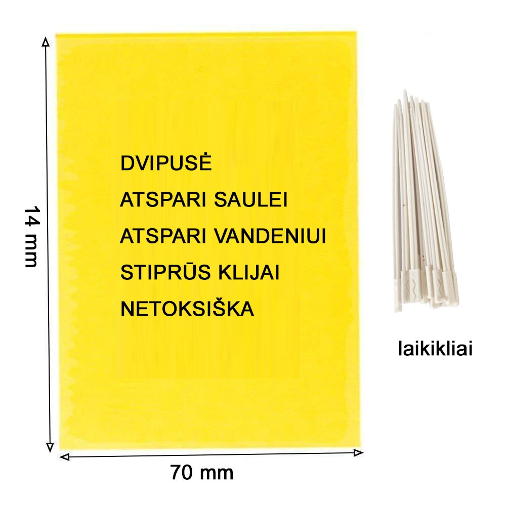 NAUDOJIMAS: nuplėškite apsauginę popieriaus juostelę abiejose pusėse, įstatykite į laikiklį, įsmeikite į žemę, užsipildžius kenkėjais - pakeiskite nauja.