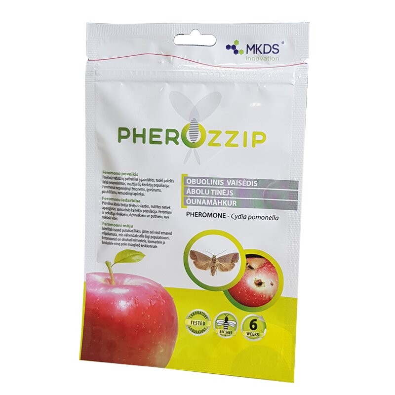 NAUDOJIMAS: Pherozzip gaudyklės (parsiduoda atskirai) su feromonu kabinamos vaismedžio vainiko viduryje, vakarų pietvakarių pusėje, apsaugotoje nuo tiesioginių saulės spindulių vietoje; gaudykles reikia pradėti kabinti obelų žydėjimo metu ir keisti kas 6 savaites. Jei gaudyklėje pasirodo drugys, o vidutinė oro temperatūra nuo 21-23val. yra virš 16,1°C - patelės deda apvaisintus kiaušinėlius. Todėl rekomenduojama imtis augalų apsaugos priemonių; kai oro temperatūra žemesnė - kenkėjų vislumas mažėja ir augalų priežiūrai užtenka feromoninių gaudyklių; naudojant daugiau gaudyklių - kenkėjų sugavimo skaičius didėja.