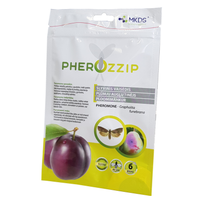 NAUDOJIMAS: Pherozzip gaudykles (parsiduoda atskirai) su feromonu pradėkite kabinti slyvų žydėjimo metu iki vaisių brendimo. Kabinkite vaismedžio vainiko viduryje, vakarų pietvakarių pusėje, apsaugotoje nuo tiesioginių saulės spindulių vietoje. Drugiai pradeda skraidyti baigus žydėti slyvoms. Skraido apie mėnesį. Per metus išsivysto 2 kartos. Kai oro temperatūra žemesnė - kenkėjų vislumas mažėja ir augalų priežiūrai užtenka feromoninių gaudyklių. Naudojant daugiau gaudyklių - kenkėjų sugavimo skaičius didėja. Pastebėjus didelį kenkėjų antplūdį - imkitės augalų apsaugos priemonių. Purškiama 2-3 savaitės po slyvų žydėjimo.