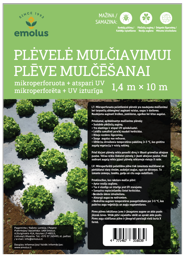 Mikroperforuota polietileninė plėvelė yra naudojama mulčiavimui bei tarpueilių uždengimui auginant vaisius, uogas ir daržoves. Naudojama auginant braškes, pomidorus, agurkus bei kitus augalus.