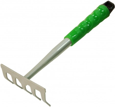 Grėbliukas su trumpa plastmasine rankena, 5 dantų.