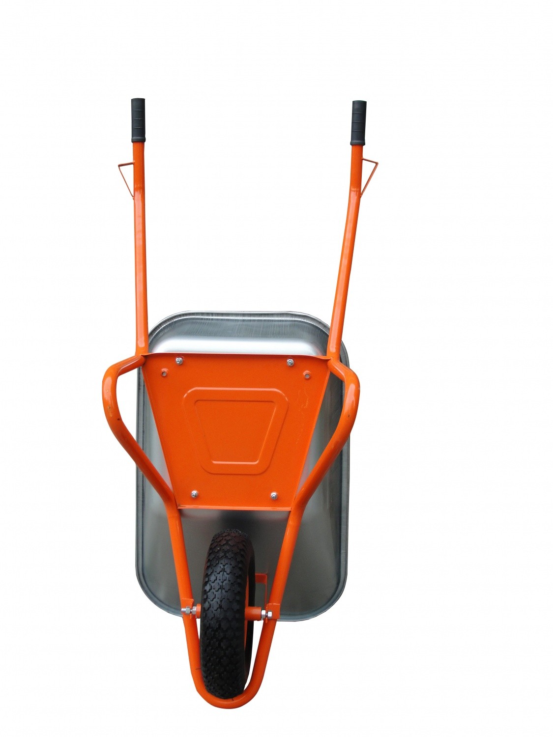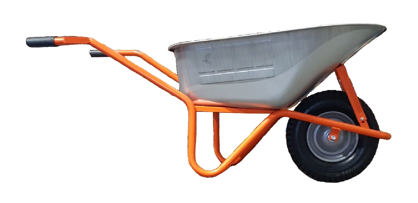 Vienaratis statybinis 100L karutis. Karučio kėbulas cinkuotas, dvigubas dugnas, ratas sustiprintas 8 sluoksnių, su guoliais. Keliamoji galia - 200kg.