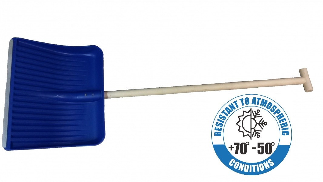 Sniego kastuvas pagamintas iš ypatingai atsparaus plastiko, sustiprintas 2mm aliuminio profiliu, su 110cm ilgio kotu bei T formos medine rankena. Kastuvo plotis - 50cm, aukštis - 45cm.