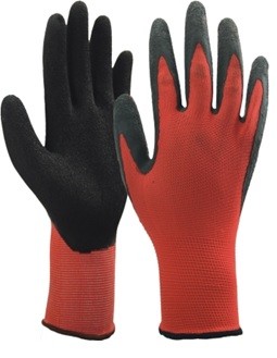 Megztos nailoninės pirštinės, aplietos grublėtu juodu lateksu. Grublėtas pirštinės paviršius užtikrina gerą sukibimą tiek su sausais tiek su drėgnais paviršiais. Pirštinės elastingos, gerai aptempia delną, nevaržo judesių, jas patogu dėvėti. Rankogalis elastinis. Pirštinių dydis - 8.