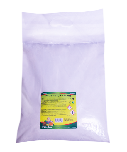 PAVOJINGUMAS: sukelia odos dirginimą. Smarkiai paieidžia akis. Gali dirginti kvėpavimo takus. Negesintos kalkės aktyviai reaguoja su vandeniu. SAUGOTI NUO DRĖGMĖS!